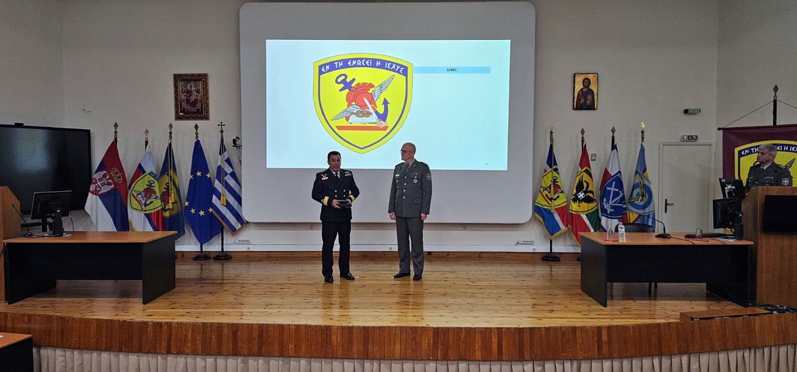 Учеснике Студијског путовања дочекао је заменик команданта Здруженог ратног колеџа комодор (грчке морнарице) Прокопиос Харитос. Домаћин је кроз пригодну презентацију упознао учеснике Студијског путовања са мисијом и задацима Здруженог ратног колеџа, након чега су одржана два предавања о „Маратонској бици“ и о „Ксенофонту из Атине“ и обилазак дела капацитета за обуку у Здруженом ратном колеџу.
