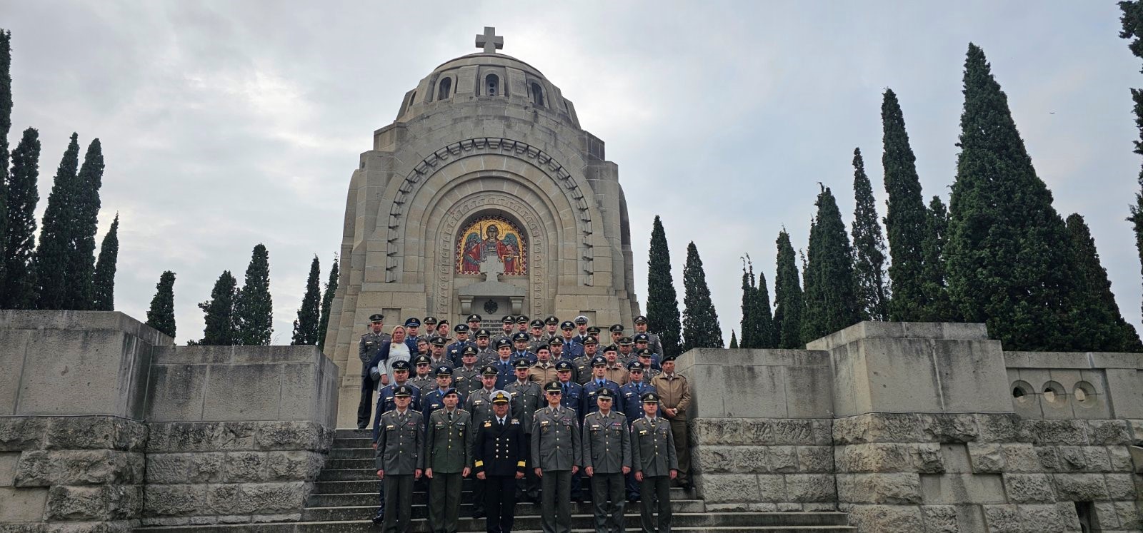 У наставку Студијског путовања, припадници Школе националне одбране положили су венац на Српском војничком гробљу у Солуну. Испред капеле на Српском војничком гробљу дочекао их је чувар Српског војничког гробља.