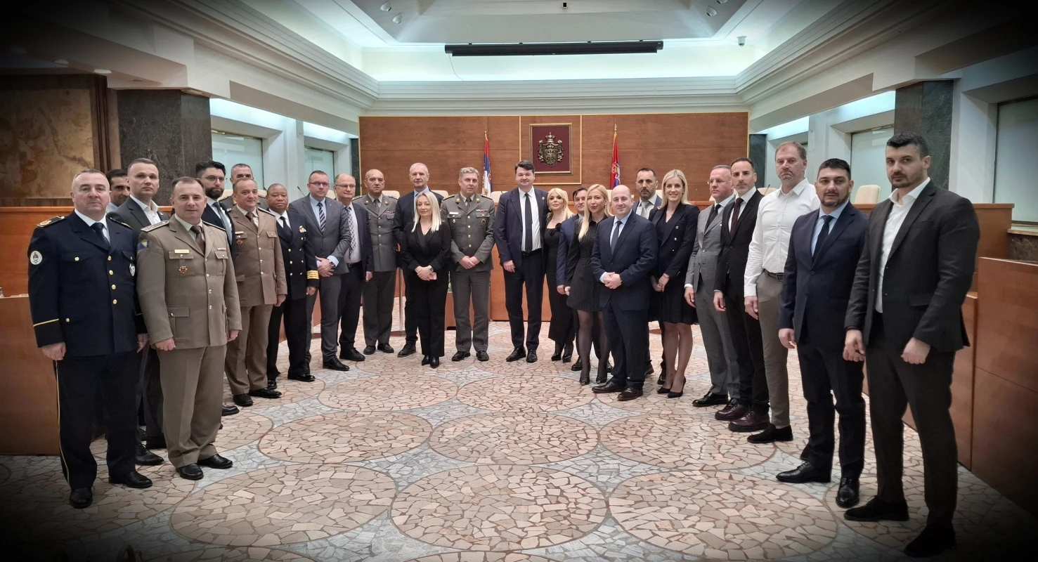 Grupa slušalaca 15. klase Visokih studija bezbednosti i odbrane (VSBO) Škole nacionalne odbrane „Vojvoda Radomir Putnik“ Univerziteta odbrane, Ministarstva odbrane, posetila je danas Ustavni sud.